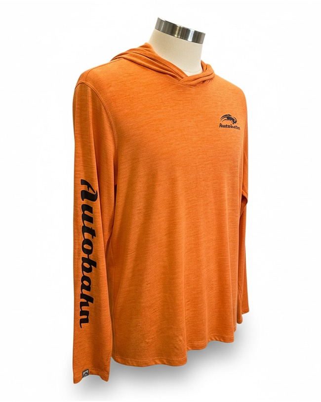 Pacesetter thin hoodie with Autobahn logo on upper left side and Autobahn spelled out down the right sleeve.