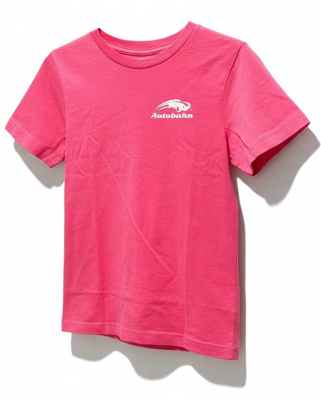 T-shirt for kids with white Autobahn logo on upper left side and full track layout on back.